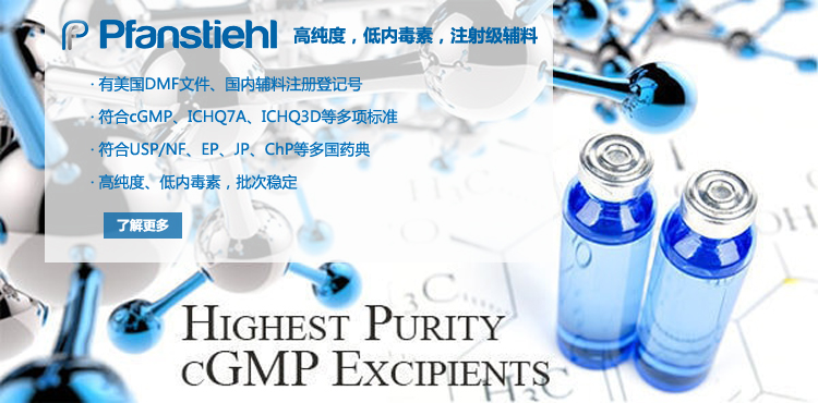 “熱烈祝賀Pfanstiehl的注射級甘氨酸Glycine(G-140)喜獲CDE登記號F20250000403, 這是Pfanstiehl產品獲得的第18個CDE登記號!”甘氨酸在醫藥輔料制劑中應用廣泛,, 可作為緩沖劑,增溶劑,穩定劑等,具有諸多優勢。Pfanstiehl秉承一貫高品質理念,為滿足全球生物制藥行業對于高品質甘氨酸的需求,隆重推出的注射級甘氨酸Glycine (G-140), 具有超高純度,超低內毒素,超低金屬殘留的特點,單獨檢測29種金屬離子,并且新增DNA,RNA,DNA酶,RNA酶和脂肪酶,亞硝酸鹽等多項質量指標的檢測,符合多國藥典規定(USP, EP, BP, JPE, ChP),可用于生物治療性藥物和疫苗的生產。產品信息:· 產品名稱:Glycine, High Purity, Low Endotoxin, Low Metals, USP, EP, BP, JPE, ChP (G-140)· 中文名稱:甘氨酸· 分子式:C2H5NO2· 分子量:75.07 g / mol· CAS號:56-40-6· 產品貨號:G-140產品特點: · 超高純度,超低內毒素,超低微生物含量,超低金屬雜質殘留· 質量指標新增DNA,RNA,DNA酶,RNA酶,脂肪酶和亞硝酸鹽檢測· 符合多國藥典:USP, EP, BP, JPE, ChP· 符合ICH Q3D標準· 符合GMP標準· 已獲DMF和CDE登記號 產品應用:· 緩沖劑· 穩定劑· 增溶劑如果您對Pfanstiehl注射級別Glycine G-140感興趣,歡迎聯系Pfanstiehl 中國區代理商北京西美杰科技有限公司獲得如下詳細的產品概況說明文件和測試樣品。Pfanstiehl Inc.最新產品系列如下,歡迎聯系北京西美杰科技有限公司獲取100g裝免費樣品。北京西美杰科技有限公司為Pfanstiehl中國代理,為客戶提供完善的技術支持與售后服務。歡迎撥打西美杰客服電話400-050-4006或者登陸網站www_xmjsci_com.ju13.com了解更多信息。 更多>